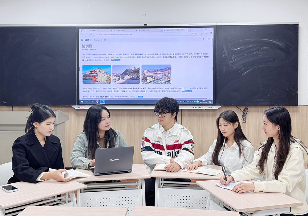 在商学院智慧商务实验实践教学中心,电子商务专业学生崔宇彤正带领团队成员对AI虚拟主播的互动逻辑进行微调。屏幕上,一位精通多语种的数字主播正向海外客商推介中国制造的工业产品。这是“数创先锋——全场景AI跨境直播驱动者”项目的日常研发场景。