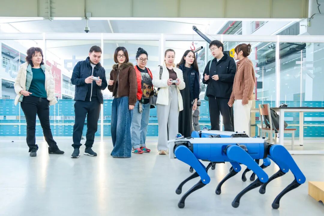 研学团成员们兴奋地比划着,用中文和母语交替表达着惊叹:“太神奇了!”“它比我想象中更灵活!”他们踊跃参与实操,亲手操作实验设备,在实践中感受人工智能技术的独特魅力,加深对技术原理的理解。