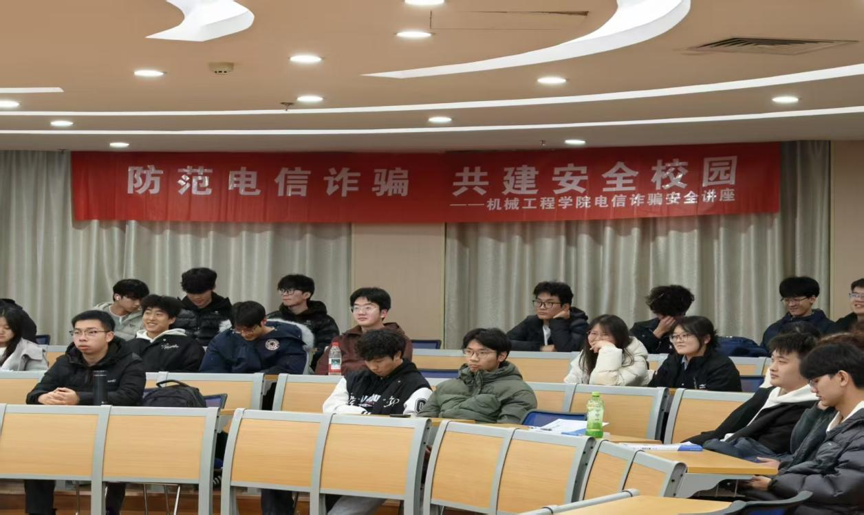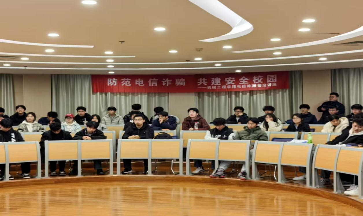 为进一步筑牢校园安全防线,提升学生电信诈骗防范意识和自我保护能力,3月18日,机械工程学院在图书馆302教室举办“防范电信诈骗,共建安全校园”专题讲座。本次讲座邀请学校保卫处治安管理科马鑫老师担任主讲,全体辅导员、各班级班长、安全委员及学生代表共同聆听报告。