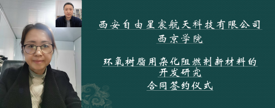 为进一步深化产教融合、校企合作,推动高校科研成果与企业实际需求精准对接,助力航天新材料领域技术攻关,西京学院电子信息学院与西安自由星宸航天科技有限公司,通过线上腾讯会议形式,顺利举行横向科研课题合作签约仪式。双方正式签订“环氧树脂用杂化阻燃剂新材料的开发研究”课题合同,合同金额共计68万元,标志着学院在产学研协同创新、服务地方高端制造产业发展方面再添新成果。