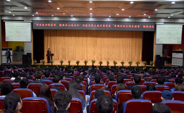 行健书院院长曾皈栋在大会上做了重要总结讲话,他首先明确了书院布置寒假作业的背景和意义,并对寒假作业的完成情况给予了充分的肯定。同时对近几年的考研形势做了客观的分析,对学生提出了更高的要求,希望所有同学能够再接再厉,行健书院的全体师生将团结一心,携手并进,积极行动,共同奋斗。