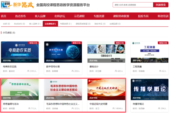近日,马克思主义学院崔杨露、李燕春、李卫三位教师主讲的《思想道德与法治》《毛泽东思想和中国特色社会主义理论体系概论》《中国近现代史纲要》三门示范课程,成功上线教育部指定展播平台——“新华思政”(全国高校课程思政教学资源服务平台)。