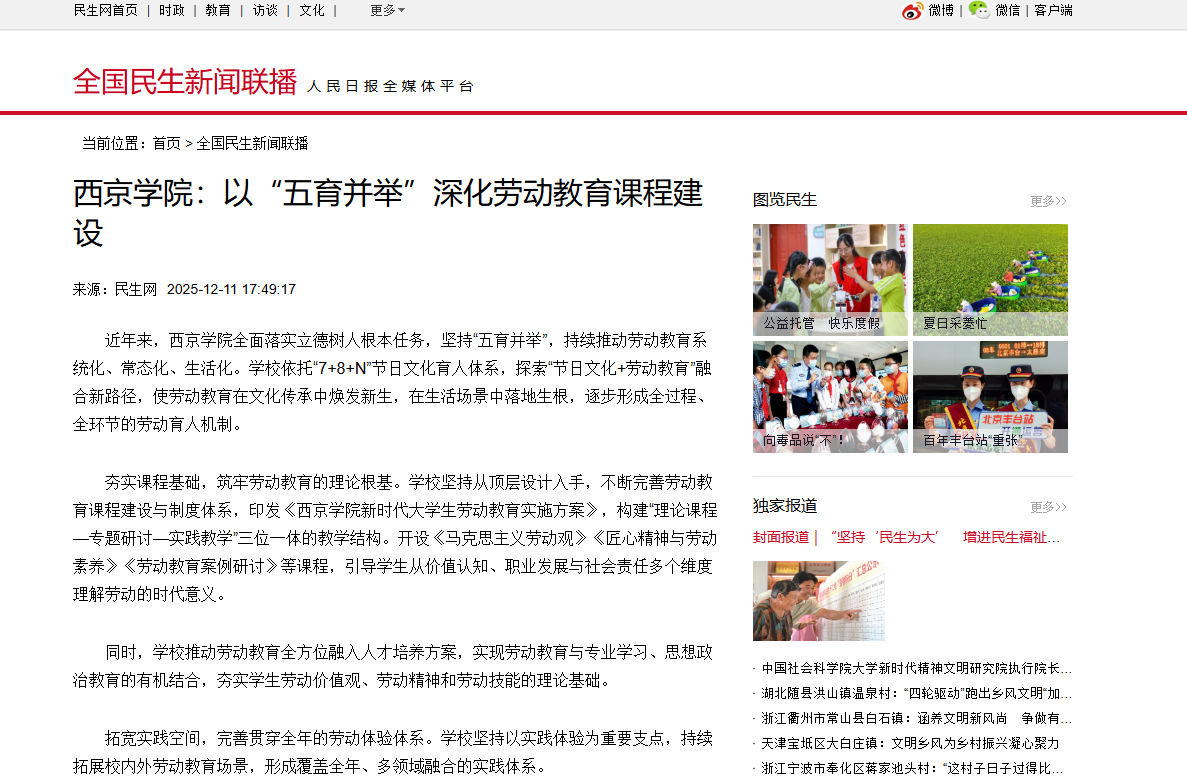 近年来,西京学院全面落实立德树人根本任务,坚持“五育并举”,持续推动劳动教育系统化、常态化、生活化。学校依托“7+8+N”节日文化育人体系,探索“节日文化+劳动教育”融合新路径,使劳动教育在文化传承中焕发新生,在生活场景中落地生根,逐步形成全过程、全环节的劳动育人机制。