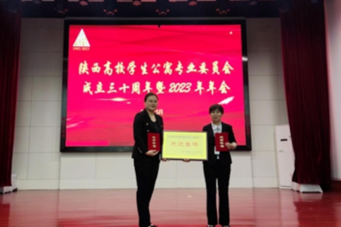 西京网讯:5月26日,由陕西高校学生公寓专业委员会主办的“陕西高校学生公寓专业委员会成立三十周年暨2023年年会”在常宁宫召开。会上,表彰了“陕西高校学生公寓先进集体、服务标兵、优秀员工(2023),我校华煜公司公寓管理分公司被评为2023年度“陕西高校学生公寓先进集体”,这是我校第六次获此荣誉。公寓管理分公司经理王丽娟荣获陕西高校学生公寓“服务标兵”,办公室干事仵桐荣获陕西高校学生公寓“优秀员工”。