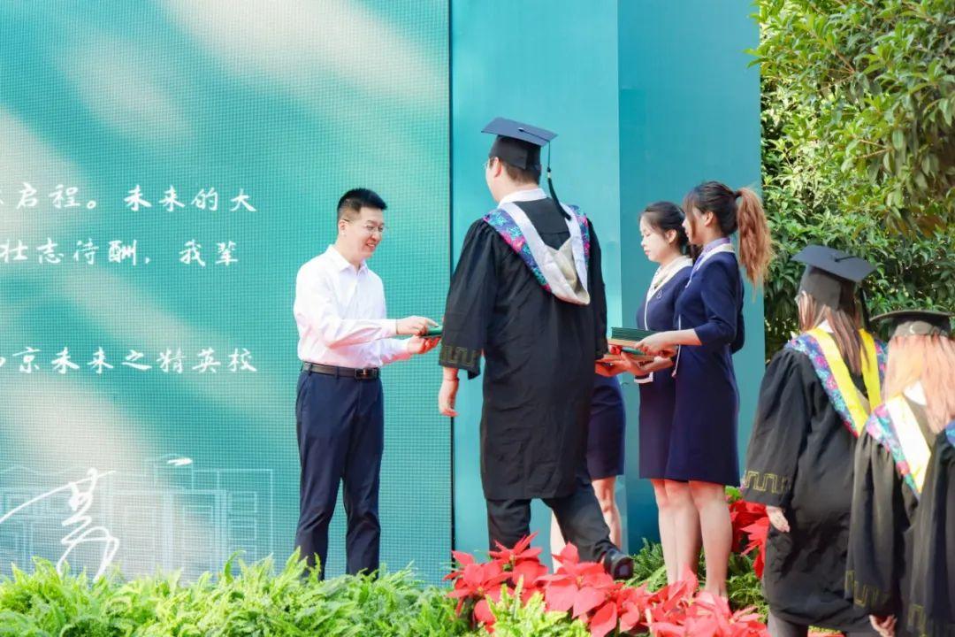 求学的过程是师生双向奔赴的接力,每一份闪耀的成绩背后都凝聚着师生的智慧与汗水。校学位评定委员会委员、商学院副院长梁林蒙副教授向优秀毕业生颁发荣誉证书。