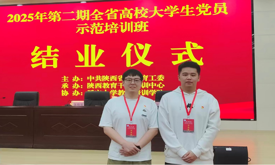 西京网讯:9月22日至26日,由陕西省教育工委组织的2025年第二期全省高校大学生党员示范培训班在延安举行。我校机械工程学院研究生党员阴佳馨与计算机学院学生党员孟立飞参加培训。