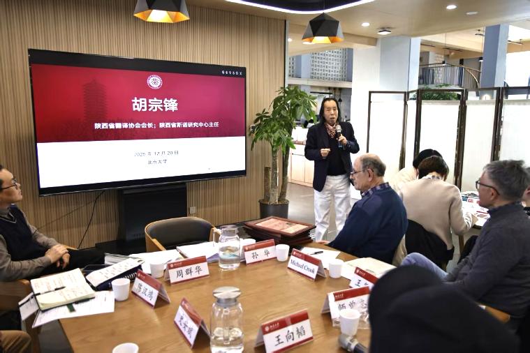 我校外国语学院院长、陕西省翻译协会主席、陕西省斯诺研究中心主任胡宗锋教授应邀作主题发言。他介绍了我校“延安精神与国际友人研究院”的成立背景、定位及规划,重点说明该研究院在延安精神与国际友人学术研究、经典著作翻译与出版等方面的工作部署。
