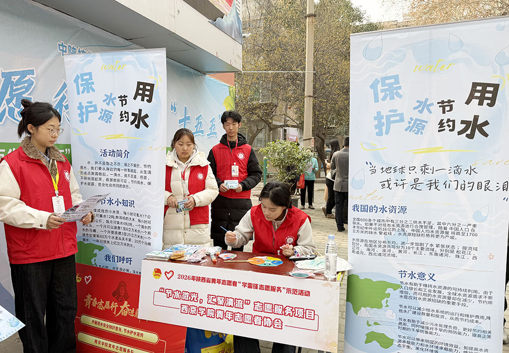 在共青团陕西省委举办的陕西青年志愿者“学雷锋志愿服务”省级示范活动中,西京学院青年志愿者协会的10名学子在校团委书记王英博带领下,走进西安市碑林区长安路街道西勘社区,集中展示该校优秀志愿服务项目——“节水微光,汇聚清流”。活动现场,志愿者们通过主题宣讲、绘画展示、社区互动等形式,向居民普及节水知识,传递生态文明理念,生动展现了青年学子服务生态文明建设的责任担当。