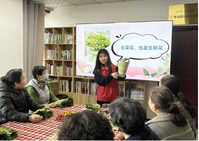 走出校门,西京学子将温暖送到社区居民心坎上。机械工程学院团委“红色小螺丝钉”志愿服务队走进广场南路社区,开展创意手工活动。志愿者们准备好新鲜蔬菜、彩纸、剪刀等材料,耐心讲解用蔬菜制作创意“花束”的步骤。在志愿者引导下,社区居民将普通蔬菜巧妙搭配,创作出生机盎然的“生菜花”。活动现场欢声笑语不断,大家在手工创作中感受社区关怀与邻里温情。