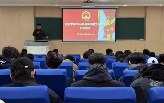 “天下兴亡,匹夫有责。”保家卫国,是每个公民的神圣职责,更是无上荣耀的使命担当。为积极响应国家征兵号召,点燃广大青年学生的爱国热情与参军报国之志,12月3日,机械工程学院在图书馆103报告厅举办2026年春季征兵政策宣讲会,邀请张量、张昊、余家钱三名退役大学生代表担任主讲,有意向参军的同学及各班级代表120余名学生参会。