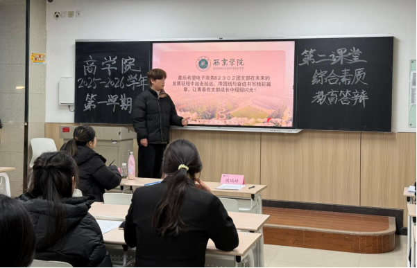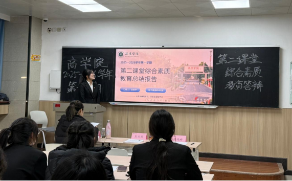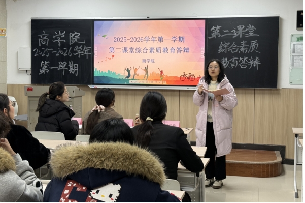 立德树人守初心,五育并举育新苗。为践行“三全育人”理念,落实“五育并举”要求,12 月 18 日下午,西京学院商学院 2025-2026 学年第一学期第二课堂综合素质汇报答辩在二号教学楼顺利举行。学院领导、教师、辅导员与各班级代表齐聚现场,共同见证“五育融合”在实践育人中的生动成果,探寻全面发展教育的创新路径。