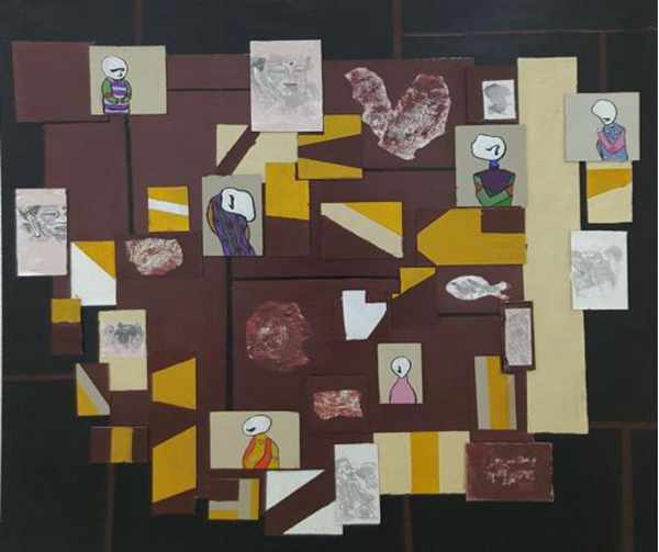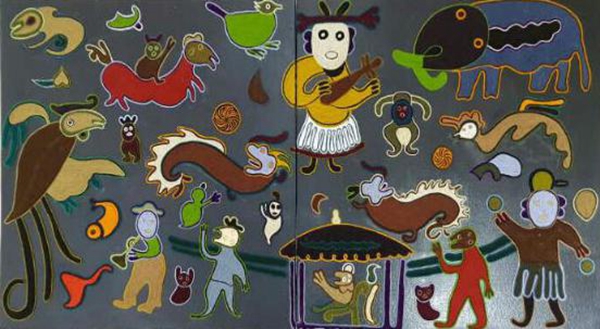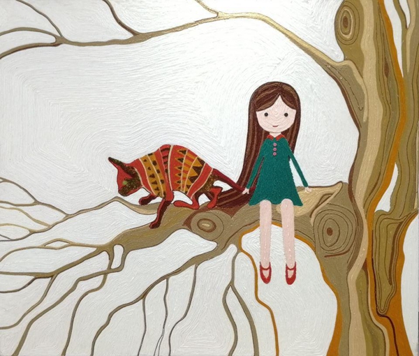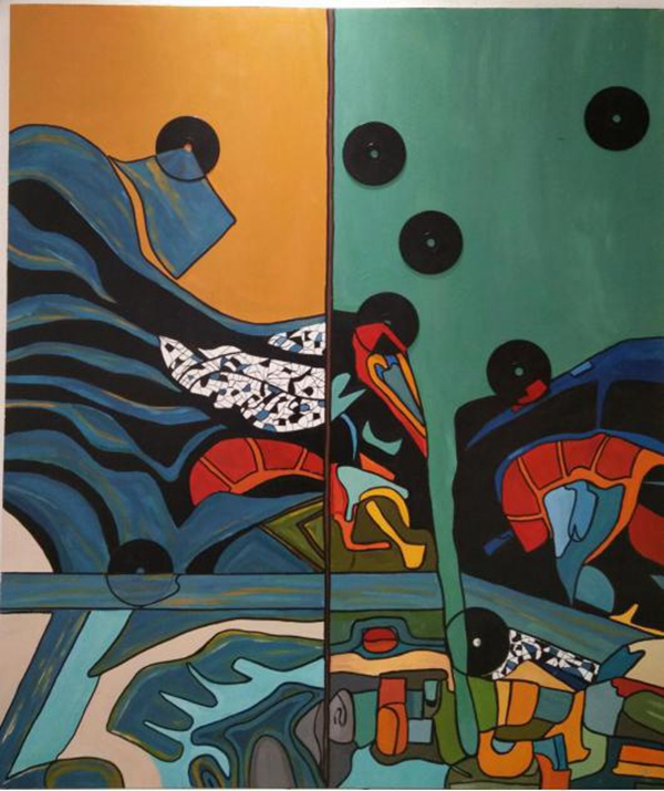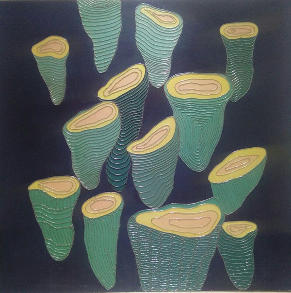 材料应用:木工板,丙烯颜料,立德粉,乳胶漆,扣子