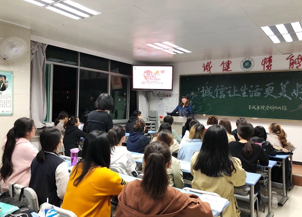 举行“讲身边故事,解传销陷阱”分享会。2018年3月13日,辅导员郭培组织15级应用化学专业开展了“讲身边故事,解传销陷阱”主题分享会。分享会上辅导员通过讲解发生在身边的一些传销案例,帮助学生了解传销的本质和形式,使同学们认识到传销的危害,从而坚决抵制非法传销诱导,立足个人实际,诚信做人,勤劳致富,树立正确的价值观。