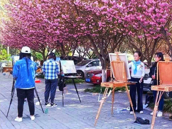 3月29日早上,西京学院设计艺术学院美术学1501班的同学们在贾小琳老师的带领下,让油画课堂从室内走向了室外教学。樱花的美与早晨的阳光洒满整个校园,远远看去,樱花林像一片连绵不断粉白云彩,掩映重叠,美不胜收。为了充分感受大自然的美、提高了学生的绘画技巧和审美情趣,增强了同学们对美的认识,美术学的同学们和老师从室内走向大自然,画出这天地又画下我和你。设计艺术学院美术学的学子们用画笔记录这份晨阳与樱花相遇的美,也成为了校园内一道亮丽的风景线。