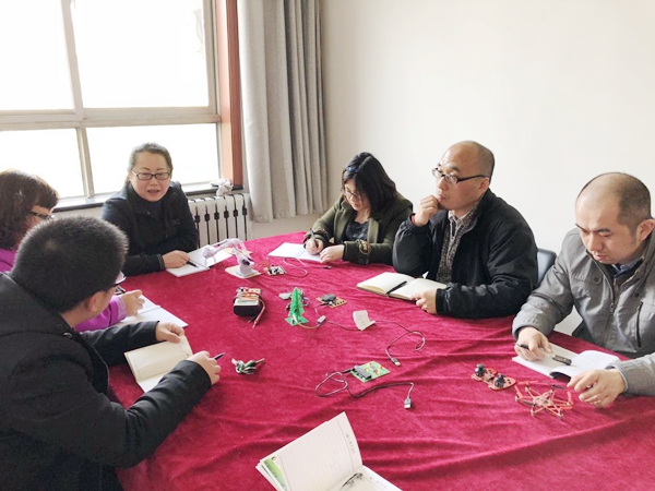 巨春飞先分析了本系学生的特点,结合课程内容,举例说明如何在课堂吸引学生,提高授课效率。接着请各位老师分享经验,组织大家进行讨论。王小丽老师介绍了自己的交流互动式教学法,在课堂上通过细致的语言组织和互动式教学设计,时刻掌控课堂教学效果;马文明老师介绍了自己项目化教学法,积极组织学生动手实践,切实学以致用。随后,老师们将上一届学生的电工电子作品进行了展示和讨论,逐一分析了作品的难度、实践点以及与该实践相匹配的实验教学环节。