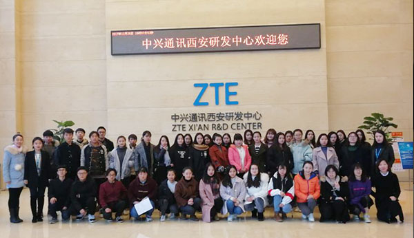 12月25日下午,西京学院应用会计系教务科科长王毅以及专职教师张欣丽、薛玲老师带领四十多名2017级新生前往ZTE财务共享中心进行参观学习。
