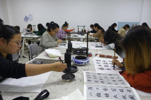 本次活动由美术学专业的班长组织策划,在艺海书法教室举行,学生们都积极参与其中,用不同的笔体书写“三无两高”的内容,随后将作品在教室墙上进行展示并合影留念。何绍奇同学说:他非常喜欢这样的活动,一方面能在课余时间与同龄人进行书法上的切磋,增强了同学们之间的感情;另一方面“三无两高”的口号给了学风上的警示。