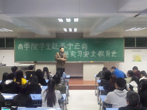 为了确保实训工作能够顺利开展,商学院于11月1日晚召开2017届电子商务学生赴苏宁云商开展实习安全教育大会,就学生社会实践、专业训练和安全工作等作了宣讲动员。商学院教务科科长史高峰、电子商务专业负责人文小森、创业书院科长赵文杰、辅导员郭依顺和王侗出席会议,会议由毛展展老师主持,2017级电子商务专业学生全员参加。