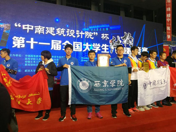 西京网讯:10月18日至23日,由我校土木工程学院三名学生(陈鹏帅、刘佰林、白奇)组成的参赛队在“中南建筑设计院”杯第十一届全国大学生结构设计竞赛中获得优秀奖,同时,西京学院土木工程学院荣获优秀组织奖,这是继2017年7月上旬参赛队在首届陕西省大学生结构设计竞赛中获得二等奖,并成功入围国赛之后,作为代表陕西省的五所高校之一赴武汉大学参加全国总决赛。本次大赛可谓名校强校云集,来自清华大学、浙江大学、同济大学、上海交通大学、东南大学、哈尔滨工业大学、重庆大学及东道主武汉大学等共计107所高校的108支代表队同台竞技。本次大赛获奖是我校土木工程学院在国家级A类竞赛得等等中零的突破,有力地提升了我校土木工程专业在全国的影响力。