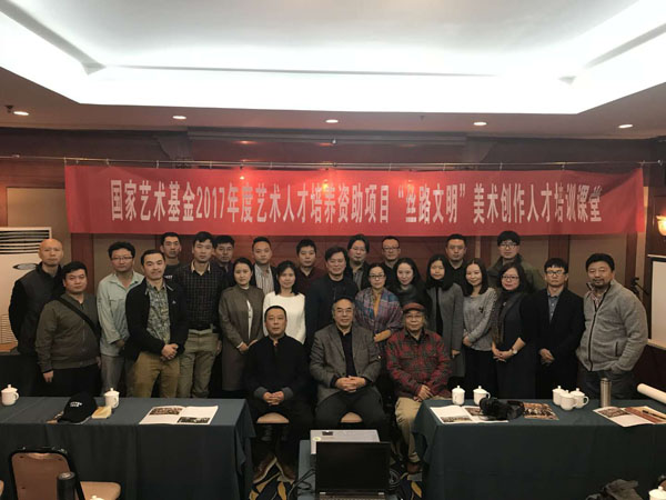 “丝路文明”美术创作人才培养由西安中国画院组织实施,旨在挖掘丝绸之路沿线文化内涵,重新审视长安历史文明脉络,为丝绸之路开发助力,彰显中国文化自信。同时繁荣国家重大题材美术创作,推介一批有思想、有温度的优秀作品,满足人民日益增长的艺术鉴赏需求。通过丝路沿线写生考察、专家主题讲座、艺术创作辅导等形式,出人才,出精品。项目聘请了在国内知名的画家、学者组成专家团队,如王西京、郭北平、乔宜男、陈承齐、王有政、张琨、王犇、屈健、徐卫民、张小琴、杨季等为学员授课。