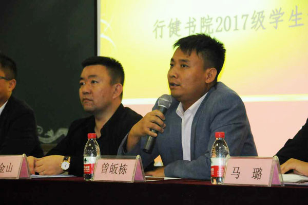 会上,赵军平为参会干部讲话。他首先强调了行健书院的人才培养目标以及书院学生干部的在书院文化建设和各项管理工作中的重要性,指出学生干部付出的是学业之外更多的辛劳,收获的却是能够享用一生的最宝贵的精神财富。李金山要求学生干部要积极参加并组织活动,从中提高自己的能力,实现自我价值。马璐希望大家一定要处理好工作和学习的关系,并在生活中有意识的培养自己的创新思维。