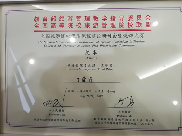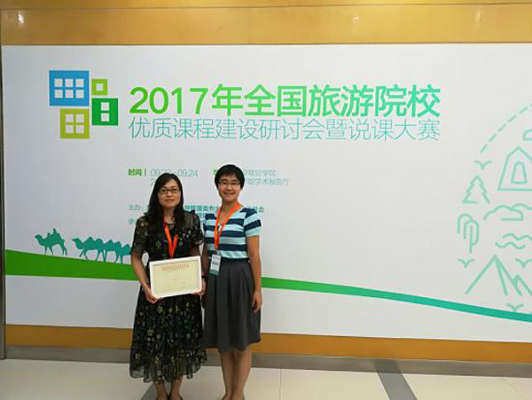据悉,说课大赛参赛教师共89名,分为三个小组,每组设一等奖1名,二等奖2名,三等奖3名。我校外国语学院酒店管理专业、旅游管理专业丁爱芹、马妍两名教师代表参赛。丁爱芹的《导游业务》课程在旅游管理小组42位参赛选手中脱颖而出,获得三等奖,马妍的《中外民俗》课程获得优秀奖。