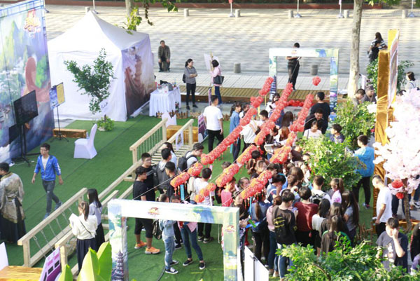 活动现场搭设古典“小桑村”场景,包括古风框架仙房、仙树、仙花以及身着汉服的人物,并设置三个游戏环节:猜灯谜、走渡桥、有奖知识竞猜。