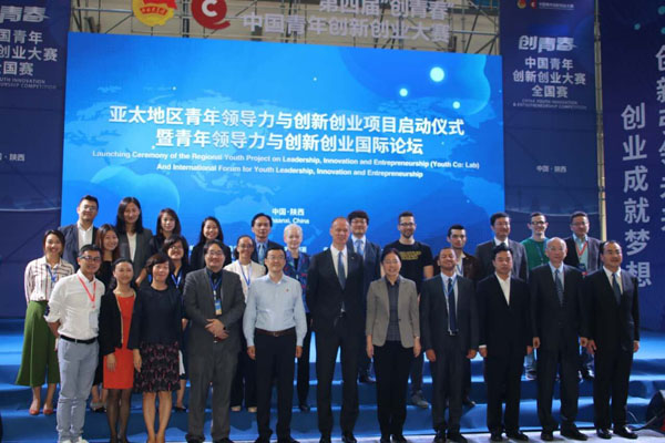 西京网讯:9月18日上午,”亚太地区青年领导力与创新创业项目启动仪式暨青年领导力与创新创业国际论坛”在陕西省西安曲江国际会展中心举办。此次活动是由共青团中央、中央网信办、陕西省人民政府等单位主办,由共青团山西省委等单位承办。主要到场嘉宾有陕西省青联主席徐永胜、陕西省青联副主席贾琳、陕西省青联副主席汪洪雁、联合国计划开发署国别副主任何佩德、包商银行首席经济学家华而诚等。