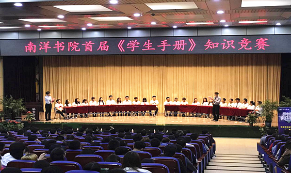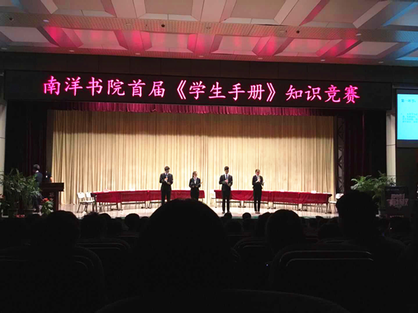 西京网讯:为了切实贯彻学校教书育人、管理育人、服务育人的理念,营造良好的校园文化氛围,增强学生的自我教育、自我管理、自我服务、自我监督的意识,促进广大学生对学校各项规章制度的进一步学习,提高学生综合素质,南洋书院于9月18日——10月9日举行了“学手册,知规范,见行动”学生手册知识竞赛系列活动,赛程分为预选赛,淘汰赛和总决赛三个阶段,淘汰赛和总决赛于28日晚19时30分于小礼堂举行,书院500余名学生出席观看了本次比赛。