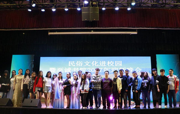 西京网讯:9月27日,“民俗文化进校园演出暨至诚书院2017年迎新晚会”在大华礼堂举行。晚会由至诚书院、招生办公室主办,港中旅(宁夏)沙坡头旅游景区有限责任公司、宁夏沙坡头旅游产业集团有限责任公司、阿拉善左旗腾格里通湖草原旅游有限公司共同承办。至诚书院副院长程永清、事务科科长高玉枝,港中旅(宁夏)沙坡头旅游景区有限责任公司陕西区域经理刘攀峰、阿拉善左旗腾格里通湖草原旅游有限公司营销经理杨坤及我校1400余名师生参加晚会。