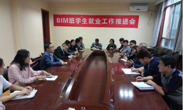 会议主要围绕2015级“BIM特色班”学生就业工作进展情况进行讨论,此次就业工作采取管理技术系和允能书院协同合作,依托“BIM班”特色培养的教育模式,精选用人单位,精准就业。