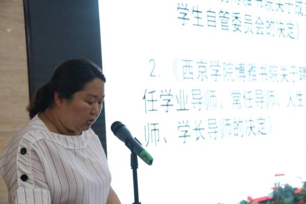 会议首先由冯春燕宣读了《西京学院博雅书院关于成立学生自主管理委员会的决定》和《博雅书院关于聘任学业导师、常任导师、人生导师、学长导师的决定》。