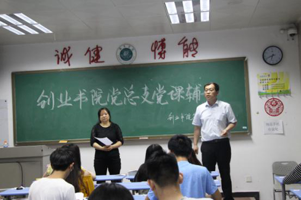 ——党支部对36期党校学员进行党课辅导。5月17日晚,创业书院党课学习辅导在2号教学楼2125教室举行。创业书院党总支组织委员赵晓华、第一党支部书记邓艳芳及书院第36期学员参加此次培训。 会前,邓艳芳老师对此次培训进行讲话,她要求所有学员在思想上入党,同时也期望所有学员可以优异的成绩通过此次党课考试。会上,邓艳芳对本次党章的知识点进行了罗列,并要求全体学生认真背诵知识点,规定时间进行检查。赵晓华从加强党的基本理论学习并结合自身实际情况贯彻落实党的政策为重点,进行爱党爱国的教育,以此来增长同学们的历史知识,增强民族责任感与自豪感。