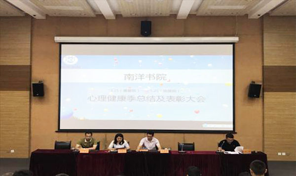 表彰大会的第二环节由南洋书院院长庞舒月、事务科科长丁照勇、发展科科长武洪涛为获奖的学生颁奖。最后由庞舒月院长发表讲话,她指出心灵是人的窗口,保持心灵健康也保证了一个面对世界的窗口,保证了一个人的目标和方向,心理健康极大地影响了一个人的行为方式,影响着日常的生活工作和发展。庞院长强调,希望同学们积极关注心理健康,以饱满的热情和积极的心态面对未来的生活。