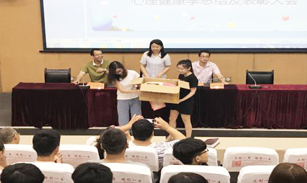 表彰会首先播放了心理健康季总结视频,视频中重现了本次心理健康季的十一项活动。高正老师总结了在本次系列活动中同学们积极参加心理健康季的讲座。在黑板报制作过程中合作、团结互助体现了班级的凝聚力。在电影赏析中,同学们认真观看影片。通过问卷调查的形式同学们积极参与调查。在心理素质拓展中,同学们团结一致。在情景剧和故事会中,同学们发挥自己的想象力,来表达对心理健康的理解。舞蹈大赛的活动中,同学们展现自己的才艺,丰富课余生活等等一系列的活动,真正体现了善爱我、我爱我。