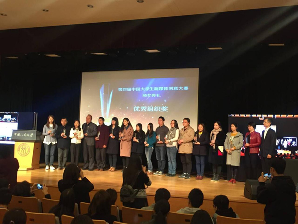 3月16日,中国人民大学八百人大礼堂,第四届中国大学新媒体创意大赛获奖详情全面已揭晓,南开大学,中国传媒大学,中国人民大学,暨南大学等众多高校参加。来自西京学院新闻传媒系张燕西、李映、刘欣雅的作品《稚趣》获得“原创故事”主题类作品“最具人气奖”。指导老师刘萍荣获最佳指导教师奖,西京学院荣获优秀组织奖。