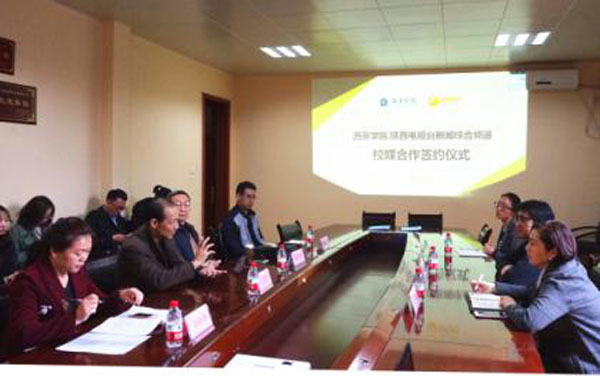 西京网讯:3月8日早,陕西电视台新闻频道团队主要成员来到西京学院新闻传媒系,新闻传媒系主任张西静与陕西电视台新闻频道运营公司副总经理王滔在6号办公楼204会议室签订了“西京学院新闻传媒系.陕西电视台新闻频道校媒合作协议”。