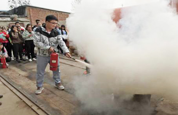 学校保卫处赵振老师讲解了灭火器的原理、使用方法以及相关的注意事项,并进行现场演试。随后对几名同学进行现场考核,了解是否真正掌握灭火器的使用情况。同学们亲自体验了现场灭火的过程,面对熊熊燃烧的火堆,按照老师讲解的内容和要求,遵照使用方法和步骤严格的使用灭火器材,将演习大火迅速扑灭,做到了冷静沉着应对突发火情,成功快速扑灭明火的消防标准。赵振强老师强调,同学们要从思想高度上重视,牢固树立安全意识,加强防火知识的学习,做到警钟长鸣,保障在校期间的防火安全,学好防火知识终身受益。消防安全人人有责,树立预防为主,防消结合的理念。每位同学结合学校的实际,了解和掌握基本的消防知识和技能,提高在意外情况下施救、自救的能力。