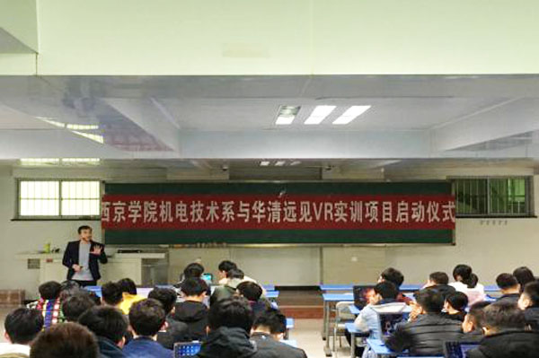 西京网讯:3月6日,机电技术系虚拟现实(VR)实训项目在1401教室正式启动。北京华清远见教育集团技术讲师屈路、就业行业讲师王康等9名企业导师,机电技术系赛炜、马翔等教师,及计算机应用技术专业112名学生参加了此次项目实训。