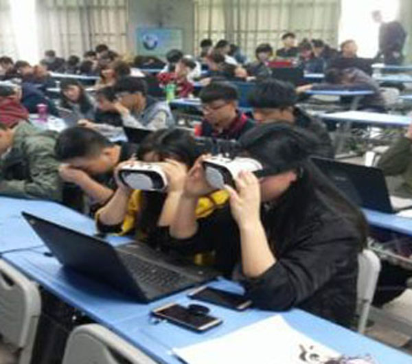 实训开始前,企业导师向学生介绍了虚拟现实技术(VR)的相关技术要点和发展前景,对实战案例进行了大致的介绍。学生们通过VR眼镜,能360度全景观看节目,表现出强烈的兴趣,表示很渴望能掌握这种新型技术。