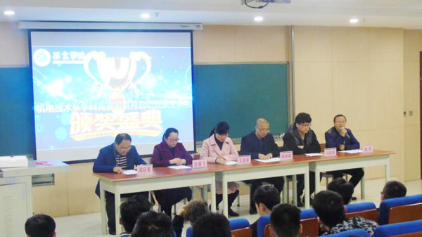 西京网讯:机电技术系为更好地推广“以赛促教、以赛促学、以赛促改”的竞赛育人模式,进一步深化我系及我校高等职业教育教学改革,真正实现应用型技能人才的培养。近期,在图书馆103会议室举行了机电技术系学科竞赛宣讲月启动暨颁奖典礼,仪式由教务科长杨军主持。校长助理王晋荣、系主任巨春飞、允能书院院长杨德森、教务二处竞赛实践运行科科长梁庆军、允能书院学生科科长马晓腾受邀列席,以及2016级学生及获奖学生代表参加。