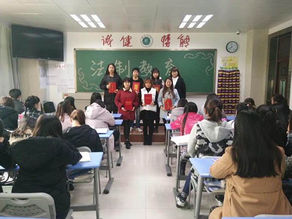 允能书院通过举办法制宣传讲座和主题班会活动,使学生了解基本法律法规,教育学生要运用法律武器,合法保护自身的权利和利益;通过对《刑法》的宣讲,教育学生懂得什么是违法,什么是犯罪,养成自觉遵守和维护法律的行为习惯,增强他们同违法犯罪行为进行斗争的意识,培养他们运用法律的能力。