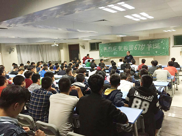 9月27日晚,允能社区各班级在教室举行“爱国主义教育”的班会,庆祝中华人民共和国成立67周年。