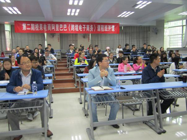 10月10日下午,商贸技术系第二期橙果电商阿里巴巴《跨境电子商务》课程班开课。教务二处边伟处长,商贸技术系主任葛伟副教授,教务二处实践教学科梁庆军科长,商贸技术系教务科何建武科长,课程班主讲教师——浙江橙果电商特聘讲师、万易互联执行董事薛博谦以及该期课程班电子商务专业110余名学员参加了开班仪式。